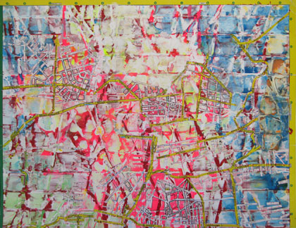 acrylic and mixed media on cardboard